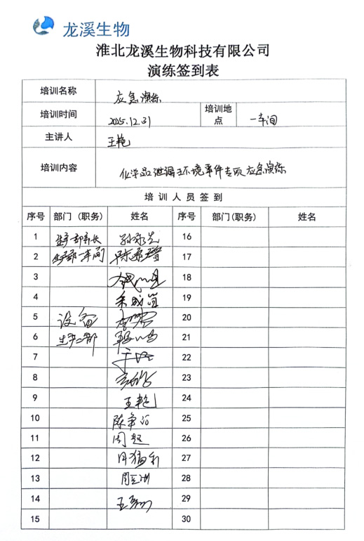 淮北龙溪生物科技有限公司化学品泄漏突发环境事件应急演练   点击下载查看